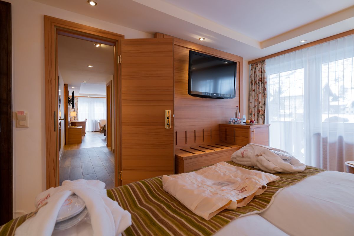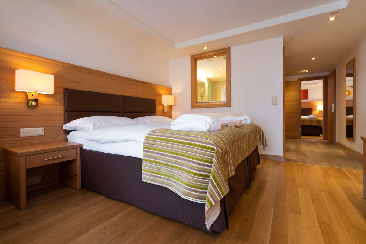 Das Appartement "Signalkuppe" ist mit warmen Farben ausgestattet und befindet sich im La Ginabelle Stammhaus. Es besteht aus zwei Einheiten mit Verbindungstüre und bietet Platz für bis zu fünf Personen. Nach Wunsch kann das Sofa in ein drittes Bett umgewandelt werden.